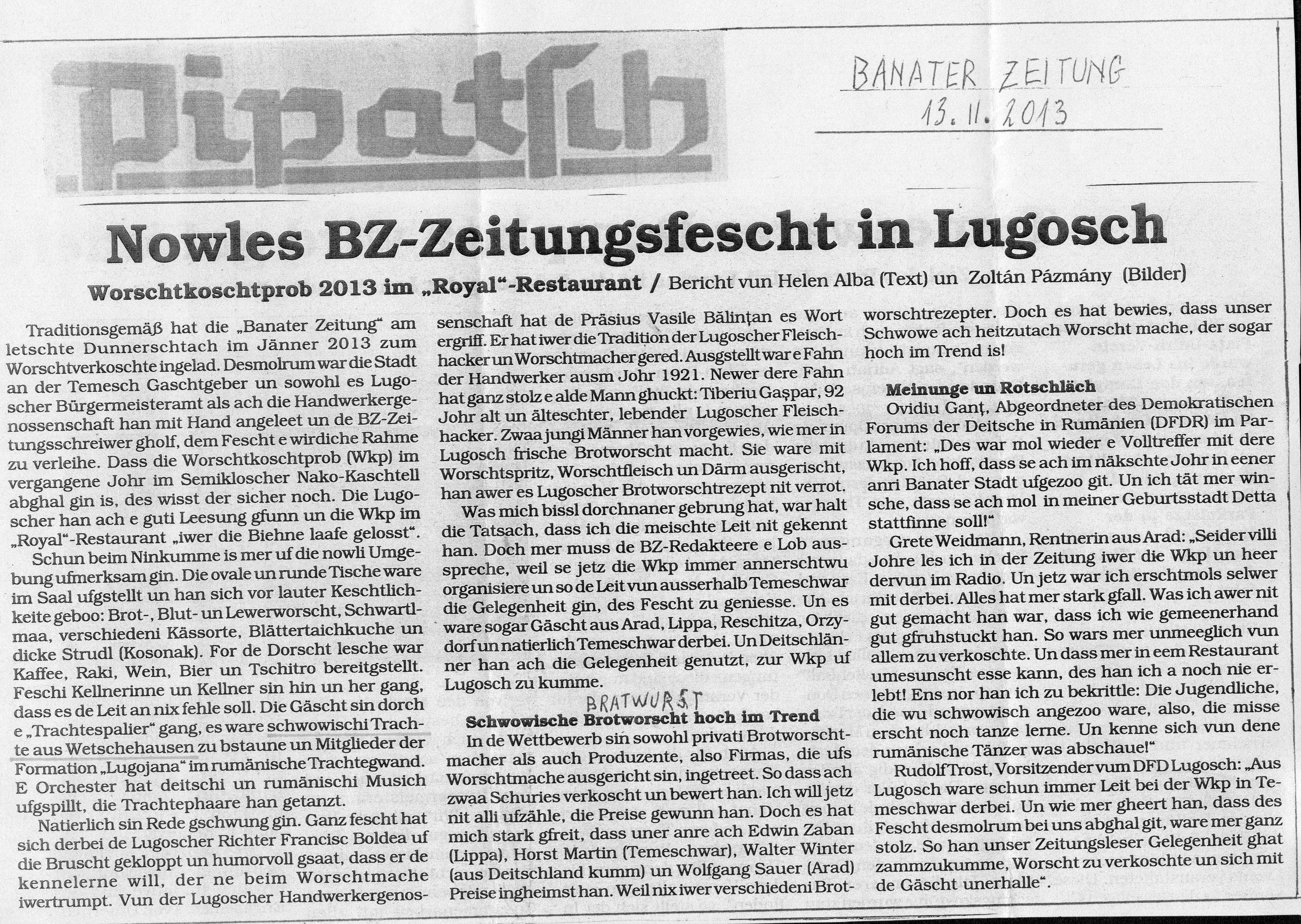 Ausschnitte aus der Banater Zeitung für Rumänien vom 13.02.2013 ( Dankeschön an Hr.Franz Weidmann, Lehrer a.D. für die Ausschnitte)